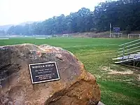 Other campus facilities include three classroom buildings (Powers, Smith, and McKenna—which also serves as the computer center), Millstein Library, Chambers Hall, the administration building (Lynch Hall), the admissions office (Rossetti House) and the Ridilla Athletic Fields. A new classroom and office building named after former campus president Frank Cassell[6] has recently opened and has been awarded LEED gold certification, being the first building on campus to achieve such designation.[7] The campus also features a nature trail and a small creek (Slate Run) that runs through the center of campus.
