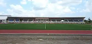 - Davao City-UP Sports Complex – the DC-UP Sports Complex has been envisioned by the City Government of Davao and UP as a regional sports facility based on international standards. It contains a training and athletic gymnasium, football stadium with oval track, an aquatic center for swimming events, training rooms and facilities, and offices and classrooms for the Department of Human Kinetics, later to be handed to the College of Human Kinetics. It is found on a 20-hectare site two kilometers away from the Administration Building.[18]