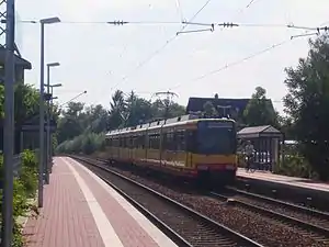 Between 1994 and 1996, services of the Karlsruhe Stadtbahn were introduced between Karlsruhe and Bruchsal by the Karlsruher Verkehrsverbund (Karlsruhe Transport Association, KVV). Since 1996, S32 services have run via the Kraich Valley Railway to Menzingen (Baden). Since 1998, S31 services have run on the Katzbach Railway to Odenheim.