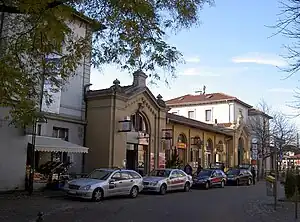 Untertürkheim station is a railway station in Untertürkheim, an outer district of Stuttgart, Germany, on the city's S-Bahn, or S-line. The station formerly included a freight yard and the abbreviation of the station precinct, including the yards, is TSU.