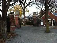 The land was purchased in 1913,[40] at a time when the city of Toronto was quickly growing around the college's Deer Park campus and the trustees were considering moving the school to a new location. Plans for buildings were drawn up by an architectural firm. However, due to the outbreak of the First World War and then the depression, the move was fully abandoned in the 1930s.[16] The college first attempted to sell the land in 1928 and again in 1935, but found no buyers.[70] Eventually, the property was developed into an outdoor education centre for UCC students and community. Beginning in 1913, an annual picnic was held at Norval, the first being catered by the King Edward Hotel. As the land had originally been cleared for agricultural use, much of the site was open field until over 700,000 seedlings were planted by staff and students through the 1940s,[71] followed by the creation of an arboretum in 1962.[70] The first bunk house was built in the 1930s and augmented in 1967 by another, larger residence and dining building known as Stephen House,[16] which won a Massey Medal for excellence in architecture for the designer, Blake Millar.[41] Stephen House contains a classroom and laboratory, in addition to the residential spaces for students and staff. There is also a bungalow-style residence for the property caretaker and in 2003 several log cabins were built for writing retreats.