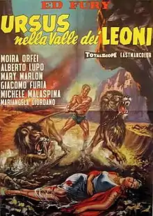Ursus in the Valley of the Lions (Italian: Ursus nella valle dei leoni, also known as Valley of the Lions) is a 1962 Italian sword-and-sandal film directed by Carlo Ludovico Bragaglia.[1][2] Although it was the fourth film in the Italian "Ursus" series, it was the first to provide Ursus with an origin story, explaining how he was raised by a lioness. Ed Fury once again appears as Ursus and Alberto Lupo plays the villainous Ajak.