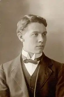 Väinö Bernhard Kohtanen (1889-1963) was an early pioneer, evangelist, college president and later, President of the Seventh-day Adventist Church in Finland during a career which spanned from 1912 - 1954. Kohtanen was one of the first Finnish speaking evangelists of that faith, and is credited with critically contributing to the introduction and spread of Seventh-day Adventism in Finland and parts of Scandinavia. Through primarily his efforts and those of two colleagues, Aarne Rintala and Kaarlo Soisalo, church membership in Finland grew rapidly, especially among young people.[1] A popular speaker, Kohtanen's evangelistic meetings held in Helsinki in 1914, when he was just 25 years of age, were held in a hall that seated over 800 persons which he was able to "fill to overflowing" over consecutive nights.[2] During his presidency of the Seventh-day Adventist Church in Finland from 1933 - 1938, membership increased by 32%.[3][4]