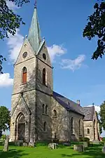 The inscription on Vg 73 consists of runes carved in the younger futhark in a text band that runs along the edge of a tall, narrow stone that is 2.55 meters in height and then curves into the center. A cross is at the top of the inscription. The stone is classified as being carved in runestone style RAK, which is considered to be the oldest style. This is the classification where the ends of the text bands are straight and do not have any attached serpent or beast heads. The stone was noted in a wall of the church in 1936, and was removed and raised in its present location in the churchyard. Before the historic significance of runestones was recognized, they were often re-used as materials in the construction of churches, walls, and bridges.