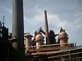 After World War II, only minor maintenance was conducted until the plant closed in 1986 during the economic steel crisis.[1][3] The ironworks retains its 1930s-era appearance today, with intact blast furnaces and the original coking plant.