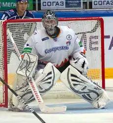 ![]() Vadim Tarasov as a Severstal Cherepovets player in the 2011-12 KHL season. | |||