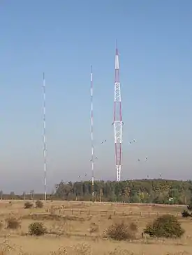 The most remarkable mast of the Vakarel Transmitter was the 215 m-tall (705 ft)[1][2] Blaw-Knox tower, built in 1937 by the company Telefunken. Along with Lakihegy Tower, Hungary, Riga LVRTC Transmitter, Latvia and Lisnagarvey Radio Mast, Northern Ireland it was one of the few Blaw-Knox towers in Europe until its demolition on 16 September 2020.[3]
