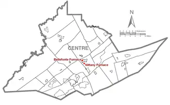 Nittany Furnace, known earlier as Valentine Furnace, was a hot blast iron furnace located in Spring Township, Centre County, Pennsylvania, United States. Placed in operation in 1888 on the site of an older furnace, it was an important feature of Bellefonte economic life until it closed in 1911, no longer able to compete with more modern steel producers.