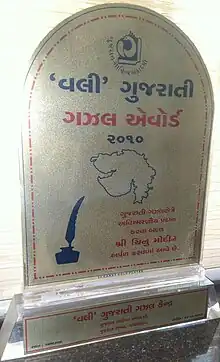 Vali Gujarati Gazal Award is a literary honour in Gujarat, India. The award was instituted in 2005 by Vali Gujarati Gazal Kendra, run by Government of Gujarat, to perpetuate the memory of 17th century poet Vali Gujarati. The Award is conferred annually to the Gujarati ghazal poets.[2][3]