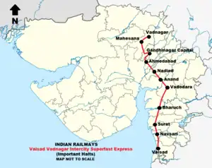- ↑ "20959 Valsad - Vadnagar Intercity Superfast Express". India Rail Info.
