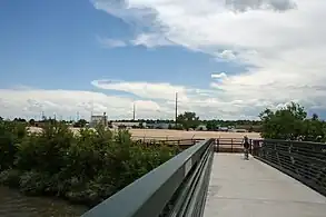 A view from the bike path bridge over the South Platte River looking west over the Valverde Neighborhood.