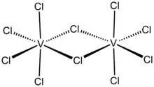 Vanadium(V) chloride is the inorganic compound with the formula VCl5. It is a black diamagnetic solid. The molecules adopt a bioctahedral structure similar to that of niobium(V) chloride.[1]