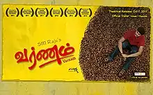 Varnam (transl.Paint) is a 2011 Indian Tamil-language drama film directed by Raju, starring Giridharan, Aathish, Monica, Sampath Raj, Aswatha and Vijay Sethupathi, Muthukumar and Karate Raja.[1][2][3][4][5] Raju., who produced the Malayalam film Anandabhadram, turns director with this film.[6]
