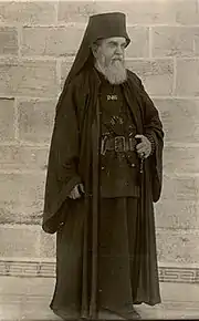 After the death of his wife, Karagiosov became a monk at Mount Athos, serving as secretary of the Zograph Monastery. He took the name Viniamin, and was ordained a Great Schema in 1934. Patrick Leigh Fermor met him in 1935, as described in The Broken Road. According to Fermor, Karagiosov became a monk because at Monte Carlo a couple of years earlier, he "had so narrowly escaped drowning that he attributed his life to God's intervention."[1]