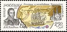 Vasily Mikhailovich Golovnin (Russian: Василий Михайлович Головнин; 19 April [O.S. 8 April] 1776, Gulyniki, Ryazan Oblast11 July [O.S. 29 June] 1831, Saint Petersburg) was a Russian navigator, Vice Admiral, and corresponding member of the Russian Academy of Sciences (1818).[1][2][3]