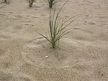 Vegetation-induced sedimentary structures (VISS) are primary sedimentary structures formed by the interaction of detrital sediment with in situ plants. VISS provide physical evidence of vegetation's fundamental role in mediating sediment accumulation and erosion in clastic depositional environments.[1] VISS can be broken into seven types, five being hydrodynamic and two being decay-related. The simple hydrodynamic VISS are categorized by centroclinal cross strata, scratch semicircles and upturned beds. The complex hydrodynamic VISS are categorized by coalesced scour fills and scour-and-mound beds. The decay-related VISS are categorized by mudstone-filled hollows and downturned beds.[1]