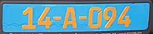 - Diplomatic plates had blue background and yellow font. Unlike previous series, the first group of numbers is two and the letter it can be used is A, C, M and E. (e.g. 00-A-000)