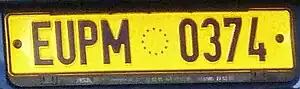 - EUPM plates used yellow background and the prefix "EUPM" followed by a numbers.
