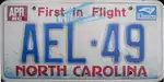 April 2007 – October 2009 | Red on reflective white with light blue Wright Flyer graphic | "First in Flight" as above | ABC-1234 | WTF-1976 to approximately ZND-9999 | Mainly issued as replacements for earlier "First in Flight" plates with the ABC-123 and ABC-12 serial formats, plus the ABC-1234 format up to JZZ-9999.[5] |