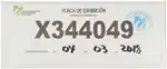 2018 | Temporary plate; Black characters on a white background; expiration date handwritten below serial number; paper inside laminated pouch | None | X123456 |