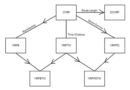 A map showing the relationship between common VRP subproblems.