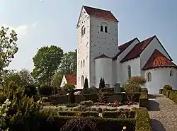 Veng Church (Veng Kirke) was constructed some time after 1100, probably as a replacement for an earlier wooden structure. It was built of limestone blocks, as were many early Danish monasteries, in the Romanesque style. It had a flat timber roof, a single nave, a choir, and an apse with two transepts, each with its own apse. The outside of the church retains several carved stones and other decorations from the original building. Even before the Danish Reformation there were no remains of Veng Abbey except for the church. Veng Church is now a parish church in the Diocese of Aarhus. [5] [6]