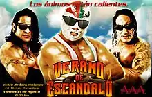 First held during the summer of 1997 the Mexican professional wrestling, company AAA began holding a major wrestling show during the summer, most often in September, called Verano de Escándalo ("Summer of Scandal").[2] The Verano de Escándalo show was an annual event from 1997 until 2011, then AAA did not hold a show in 2012 and 2013 before bringing the show back in 2014, but this time in June, putting it at the time AAA previously held their Triplemanía show.[3] In 2012 and 2013 Triplemanía XX and Triplemanía XXI was held in August instead of the early summer.[4] The show often features championship matches or Lucha de Apuestas or bet matches where the competitors risked their wrestling mask or hair on the outcome of the match. In Lucha Libre the Lucha de Apuetas match is considered more prestigious than a championship match and a lot of the major shows feature one or more Apuesta matches. The 2009 Verano de Escándalo show was the 13th show in the series.