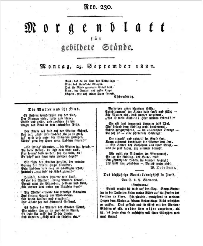The work is based on the eleven-strophe poem Die Mutter und ihr Kind (The mother and her child) by W. Dobelbaur.