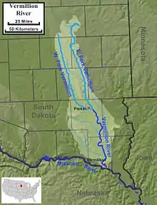 The Vermillion is a north-south river situated between the Big Sioux River and James River.[4]