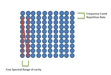 There will only be appreciable output from the optical resonator when a frequency peak from the frequency-comb laser coincides with a harmonic of the free spectral range of the cavity. In Vernier spectroscopy, the ratio of the repetition rate of the frequency comb to the free spectral range of the cavity is N/(N-1), where N is an integer, so that only every N peak of the frequency comb will satisfy the resonance condition of the optical cavity and propagate through it and the sample. This is chosen so that the two sets of resonances form a Vernier scale, giving the name to the technique. This is essential because a typical frequency comb repetition rate is on the order of radio frequencies, making the task of resolving and detecting individual frequency components difficult. If N is made to be large, then the frequency separation of the resonator output peaks will be large enough to be resolved by a simple grating spectrometer. If the length of the cavity is changed slightly, usually by a piezoelectric actuator, then the free spectral range of the cavity will also change. This changing FSR develops a new set of resonances with the frequency comb as the scan proceeds, effectively scanning through the sets of 'filtered out' peaks of the frequency comb.