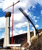The Verrières Viaduct is a curved 720-metre concrete autoroute box girder bridge in the south of France, which at one point was briefly the highest bridge in France; it is almost 500 feet tall.