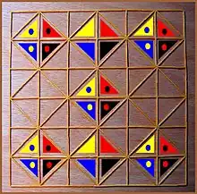 Verso Recto is an abstract strategy game for one to four players, designed by artist Twagirumukiza Innocent.