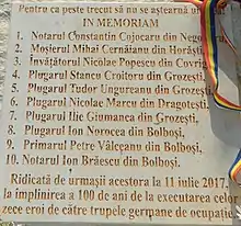 Plaque with the names of WW I hostages executed by Germans at Turnu-Severin prison on July 10, 1917.