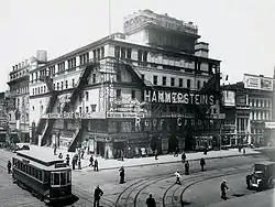 The Victoria Theatre was a prominent American vaudeville house during the early years of the twentieth century. Theatre mogul Oscar Hammerstein I opened it in 1899 on the northwest corner of Seventh Avenue and 42nd Street, along New York City's Longacre Square (now Times Square).[3] The theatre was closely associated with the Paradise Roof Garden above it, and the two venues came to be known collectively as Hammerstein's.[4] The Victoria closed in 1915.