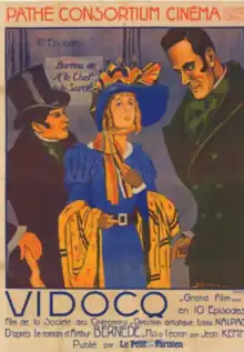 Vidocq is a 1923 French historical drama film directed by Jean Kemm and starring René Navarre, Elmire Vautier and Rachel Devirys.[1] It is based on the novel of the same title by Arthur Bernède.[2] The film's sets were designed by the art director Louis Nalpas.