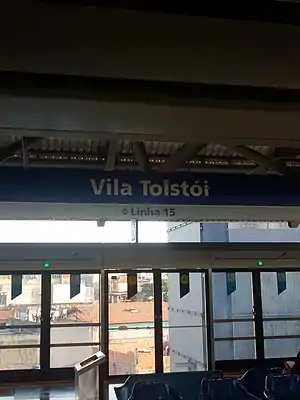 Vila Tolstói is a monorail station of São Paulo Metro. Belongs to Line 15-Silver, which is actually in expansion, and should go to Cidade Tiradentes, with connection with Line 2-Green in Vila Prudente. It is placed in Av. Prof. Luis Inácio de Anhaia Mello, 7753, next to Rua Angical do Piauí, in the border of the districts of São Lucas and Sapopemba.