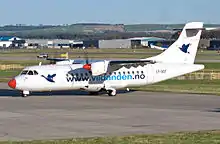 On 19 April, a new Jetstream 32 aircraft was taken into service. This allowed capacity to increase from 12 to 19 passengers, and at the same time travel time was reduced from 47 to 39 minutes.[16] By September, the most popular departures were being booked full, and Vildanden asked Coast Air for a larger aircraft, with about 30 seats. In addition to allowing more passengers, larger planes would give higher comfort, and allow a more flexible ticket pricing scheme.[9] An agreement with Danish Air Transport (DAT) to operate an ATR 42, with a capacity of 48 seats, was signed in mid-October.[17]