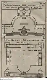 Palladio included the project in book two of the I quattro libri dell'architettura, published in Venice in 1570. In the Quattro libri, Palladio affirms that he had begun the construction of a villa at Meledo for the brothers Ludovico and Francesco Trissino, ranking figures in the aristocracy of Vicenza and Palladio’s patrons not only at Meledo but also at their city palace in the Contra’ Riale (1558) and at a small suburban casino. Palladio refers to the building as having been begun, and praises the site which includes a small hill. However, it is debatable how much of the multi-level design illustrated in the book was constructed – probably only a small part of the design was ever attempted.[1] This did not prevent the plan from being influential: Thomas Jefferson's University of Virginia shows some similarities to it.