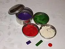 Vira is a trick-taking game. The actual trick play is preceded by an auction, as in Bridge. The player who bids the highest contract plays against the other two players. Vira is a very complicated card game and there are several variants of the rules. It is played with gaming chips of which there are three or four different types. The stakes are placed in a so-called virapulla (pictured). The dealer deals 13 cards each. Then an auction takes place in which there are 40 contracts to choose from. The one who announces the highest contract becomes the declarer; the other two become the defenders. After the auction, the declarer may 'buy' cards from the talon in a procedure called the 'purchase' (köpet). Then the trick-taking game begins. When play is finished, the 'payment' (betalningen) follows. Here, the declarer either gets paid in chips or has to pay chips to the opponents depending on what bid the declarer made and how the game went. Then the next round begins.
