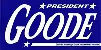 Shortly after joining, Goode moved up in the Constitution Party ranks. Party founder and Virginia chairman Howard Phillips named him to the National Committee in 2010, and in November of that year, National Committee Chairman Jim Clymer appointed him to the party's executive committee.[13] The moves encouraged rumors that he was considering a 2012 presidential run. Such speculation continued in 2011,[15][16][17] as Goode increased his visibility in paleoconservative circles. He participated in a Conservative Political Action Conference (CPAC) panel arguing against both illegal and legal immigration,[18] and wrote an article for The American Conservative opposing the passage of the South Korea–United States Free Trade Agreement.[19] In April 2011, after Goode delivered a speech at a Constitution Party meeting, the Constitution Party National Committee unanimously passed a resolution asking him to seek their presidential nomination.[20] In a press release, the party said that he had "expressed a strong interest" in the nomination.[21] Thereafter, Goode told The Roanoke Times that he would "consider it as the year progresses".[22] Clymer informed the publication that "There's nothing that I can see now that would prevent him from getting the nomination were he to say he indeed wants it."[22]