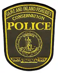 The law enforcement officers of the department have the title conservation police officer.[4] Conservation police officers enforce Virginia laws relating to hunting, fishing, and boating; conduct patrols in cars, aircraft, all-terrain vehicles, and boats, and on foot; and investigate tips from the public. Virginia conservation police officers are also appointed as deputy U.S. Fish and Wildlife Service special agents, which allows them to investigate (and cross state lines to investigate) suspected violations of federal wildlife laws.[4] Virginia game wardens were first appointed in 1903. The title was changed to "conservation police officer" in 2007.[4]