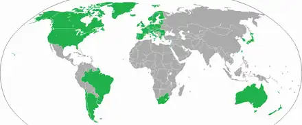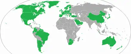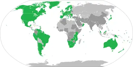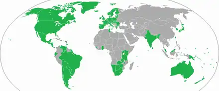 - ↑ The regulations of 2019 specified a visa waiver for nationals of all countries in the Commonwealth of Nations except for Bangladesh, Cameroon, Gambia, Ghana, India, Jamaica (between 15 and 70 years of age), Nigeria, Pakistan, Sierra Leone, Sri Lanka and Uganda.[27] Rwanda joined the Commonwealth of Nations in 2009, and Gabon and Togo joined in 2022, but as of 2022 the Department of Immigration of the Cayman Islands and Timatic still listed a visa requirement for nationals of these countries.[28][6]