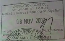 - ↑ PASSPORT AND VISA REQUIREMENTS FOR ENTERING THE KINGDOM OF TONGA