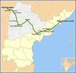 - ↑ "Nanded–Visakhapatnam Express". India Rail Info. Retrieved 2 March 2015.