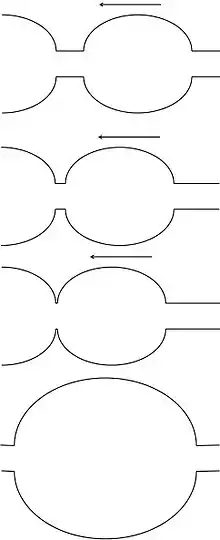 In drop draining a small bead between two beads gets smaller in size and the fluid particle moves towards the adjacent beads. The smaller bead drains out as shown in the figure.