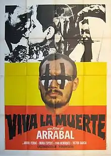 Viva la Muerte (English: Long Live Death) is a 1971 internationally-produced drama film shot in Algeria, France, Spain, Italy, Portugal, Brazil, Philippines, Morocco and Tunisia and directed by Fernando Arrabal.[1] The film was released on 12 May 1971 and Arrabal drew on his own childhood for inspiration for the movie.[2] Viva la Muerte takes place at the end of the Spanish Civil War, telling the story of Fando, a young boy whose father was turned in to authorities as a suspected communist by his Falange-sympathizing mother. It has gained cult popularity as a midnight movie. The opening credits sequence features drawings by acclaimed artist, actor and novelist Roland Topor.