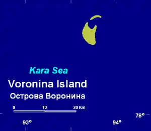 Voronina Island or Voronina Islands (Russian: Острова Воронина, Ostrova Voronina or Остров Воронина, Ostrov Voronina) is an isolated two-island group composed of a larger island and a narrow island on its northern side separated by a 3 km wide sound.