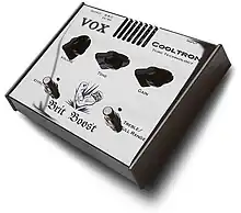 Vox developed a line of analog effects pedals dubbed Cooltron, designed to offer guitarists vintage-sounding overdrive, compression, boost, distortion and tremolo. The pedals used low-power 12AU7 tubes to create vintage soft-clipping preamplification. Two of the Cooltron pedals, the Big Ben Overdrive and the Bulldog Distortion, won the Guitar World magazine Platinum Award.[28] Cooltron pedals: