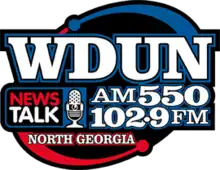 WDUN (550 kHz), known as "North Georgia's Newstalk", is a news/talk formatted AM radio station licensed to the city Gainesville, Georgia, in the Atlanta, Georgia radio market. WDUN is licensed as a Class B AM broadcast facility by the Federal Communications Commission operating with 10,000 watts of power during the daytime using a non-directional antenna signal pattern, and 2,500 watts during nighttime using a directional antenna pattern. The station is currently owned by JWJ Properties, Inc., doing business as Jacobs Media Corporation, which also operates WDUN-FM in Clarkesville, Georgia.[1][2][3]