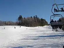 The resort features 27 trails, ranging in difficulty from easiest (green circle) to most difficult (black diamond). Amidst these trails is a terrain park and a racing venue. Two high-speed chairlifts (Minuteman and Polar Express) service the two main peaks as well as a newer high-speed lift for the beginner area (Monadnock Express).[6] One additional 3-person chairlift (Vickery Bowl) services the mid-mountain area. Three magic carpets service the mountain's training slopes with a third open only during weekends and holiday periods for ski school lessons for young children.